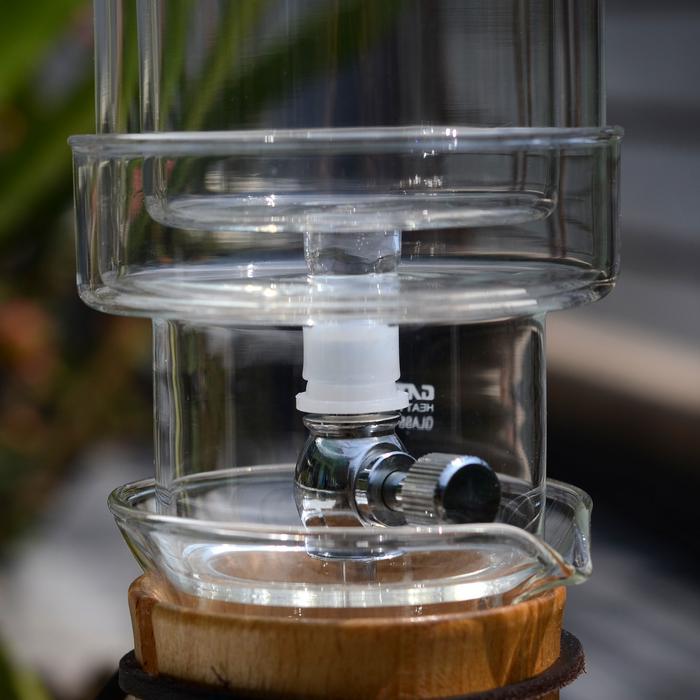 Cold Drip Coffee Maker Ice – 450 mlPernah menyeduh kopi dengan air dingin bahkan dengan lelehan es batu? Nikmati sensasi ini langsung di rumah-mu! Biasanya alat kopi untuk membuat kopi tetes dingin ini selalu hadir dalam ukuran raksasa kelas coffee shop dan tidak mengakomodir keinginan home brewer untuk memilikinya dirumah. Namun kini Cold Drip Coffee Maker Ice hadir dengan ukuran 450 mililiter yang tampil dengan desain yang cantik secara estetika. Untuk membuatnya kamu cukup membasahi filter untuk menghilangkan aroma kertas, kemudian masukan kopi yang sudah di grind medium fine, lalu atur keran air hingga menetes dengan kecepatan sesuai keinginan kamu. Sebagai acuan awal, kamu bisa memulainya dengan 1 tetesan / detik.
