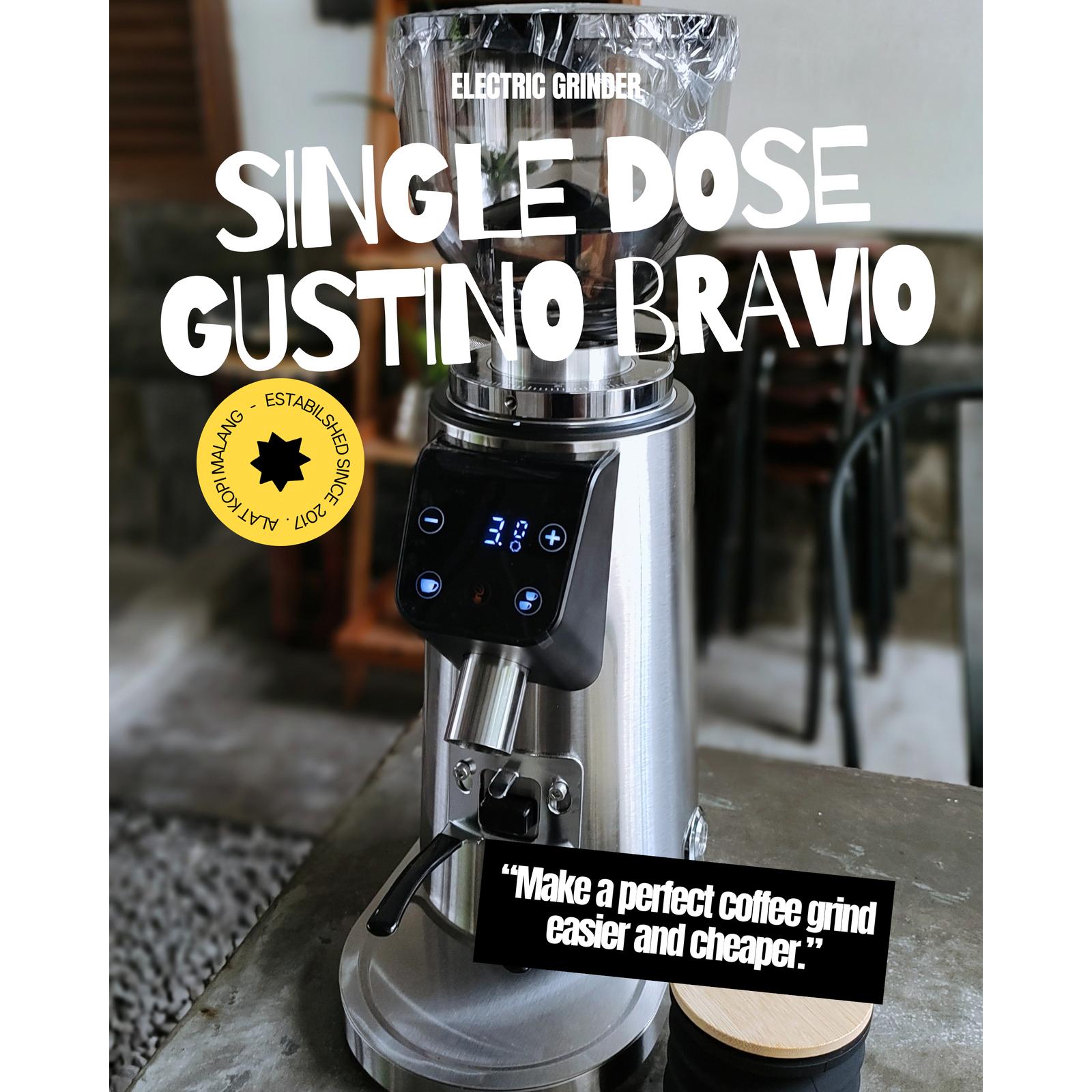 GUSTINO BRAVIO Grinder Kopi Elektrik Single Dose Automatik dengan Dual Hopper & Blower Material Stainless Steel 64mm untuk Espresso