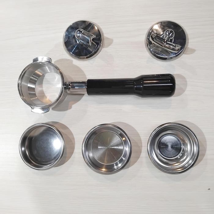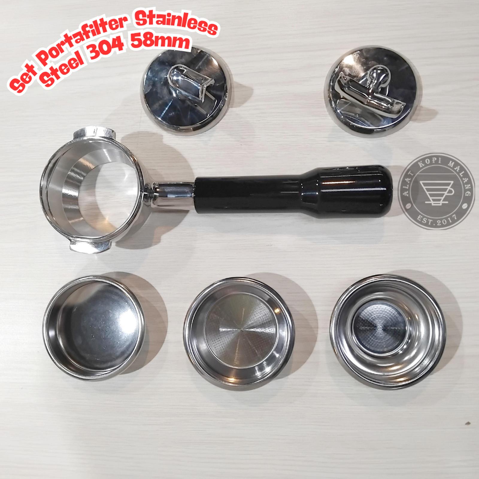 Set Portafilter Stainless Steel 304 58mm Non-Pressurized dengan Filter Basket 1 & 2 Cup & Spout Detachable